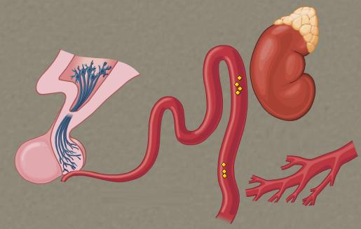 En la animación, la ADH es transportada por sangre hacia los riñones y vasos sanguíneos. Cuando las moléculas son reconocidas por receptores de las células blanco, se forma el complejo hormona-receptor responsable de disparar cambios a nivel celular.